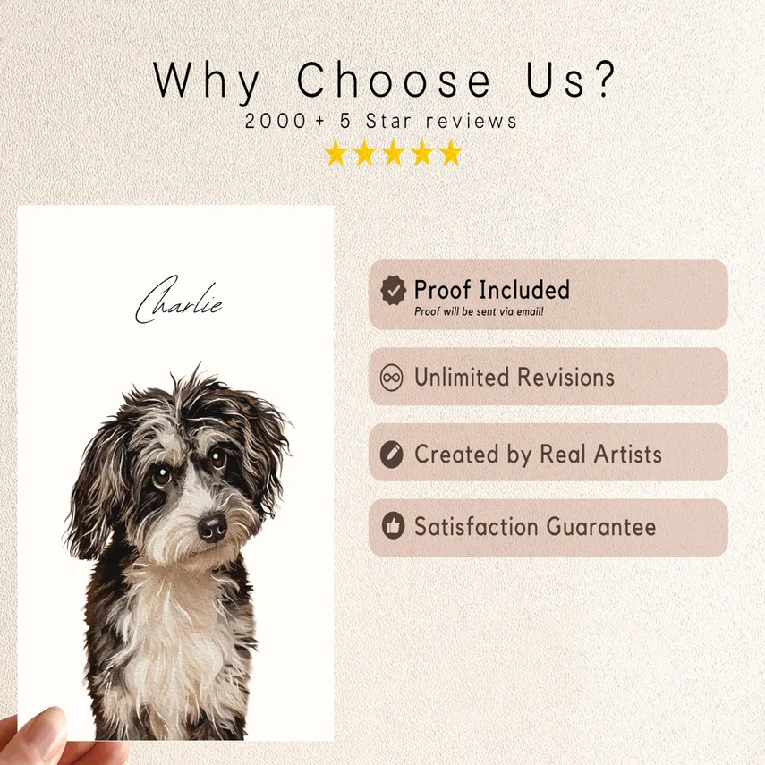 The portrait is BEAUTIFUL of my two fur babies who are no longer with us. It’s so healing to see them together. I asked for two revisions which were done promptly & perfectly! Not only that, the first portrait was delivered damaged and customer service was so kind & prompt with getting a replacement out asap. I can’t say enough good things about this company & the beautiful portrait that was clearly done with precision & pride. Thank you so, so much!