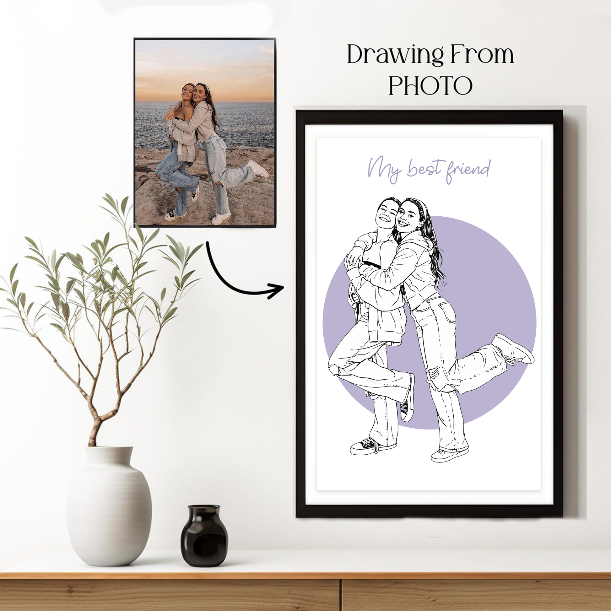 Turn your favorite memories into timeless wall art with a custom simple line drawing portrait – a perfect painting from photo that captures love, joy, and connection. Whether you're looking for a romantic couple portrait, a heartfelt anniversary gift, or a one-of-a-kind wedding illustration, this personalized artwork is made to celebrate your special moments.